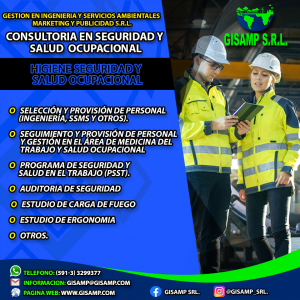 SERVICIO DE CONSULTORIA AMBIENTAL SERVICIOS DE CONSULTORIA EN SEGURIDAD Y SALUD OCUPACIONAL SERVICIOS DE INGENIERIA SERVICIOS DE MARKETING Y PUBLICIDAD